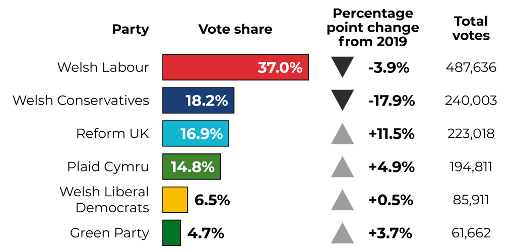 The dust has started to settle on the UK General Election campaign of 2024, with the result being broadly as the polls predicted. There will be endless columns and analysis dedicated to the picture overall for Labour’s landslide victory and the Conservative Parties disastrous result. This post will instead look specifically at what the results mean for Wales, and what that might mean for future Senedd elections.